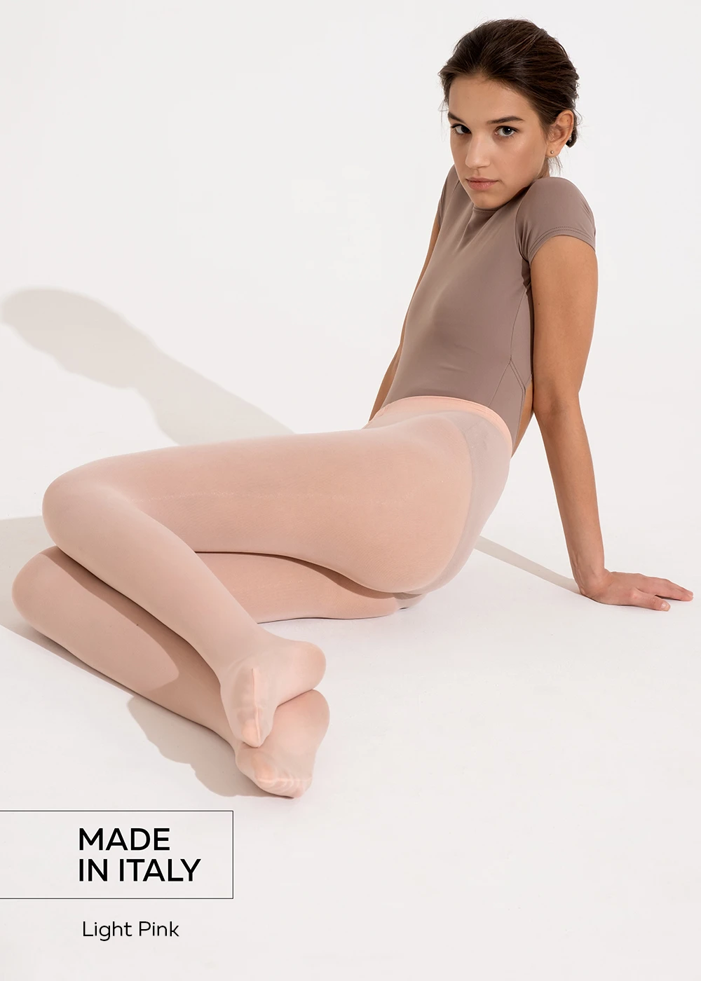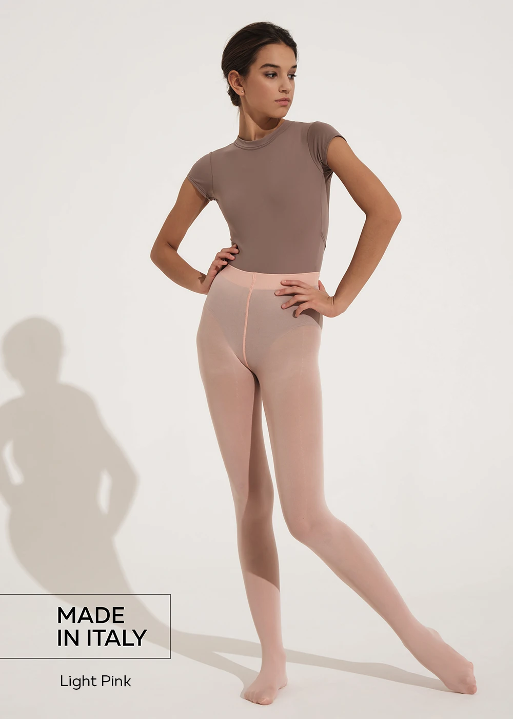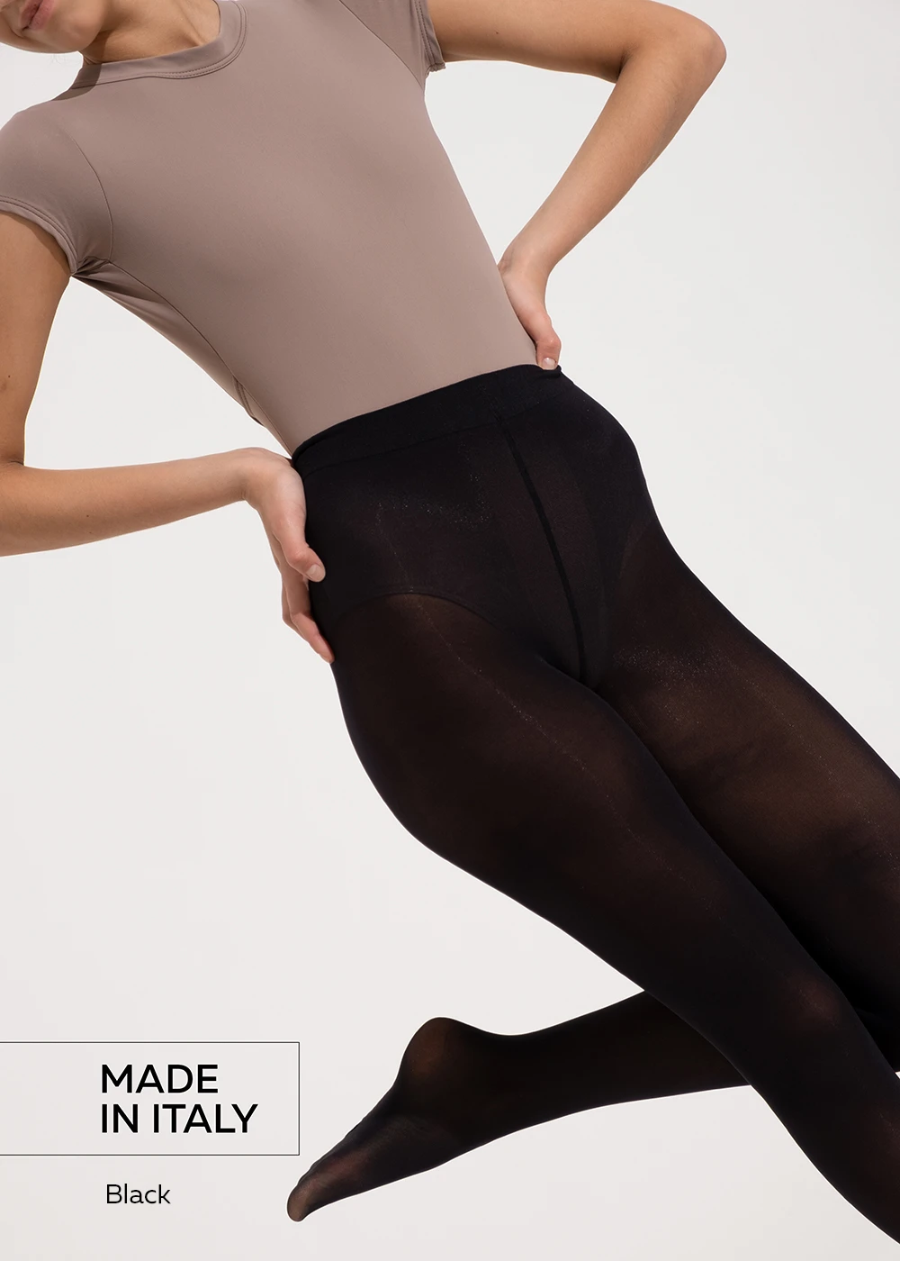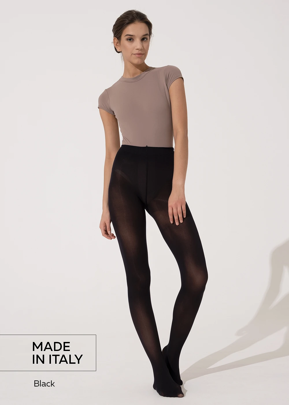Microfiber footed tights. Microfiber Knit-in waistband.