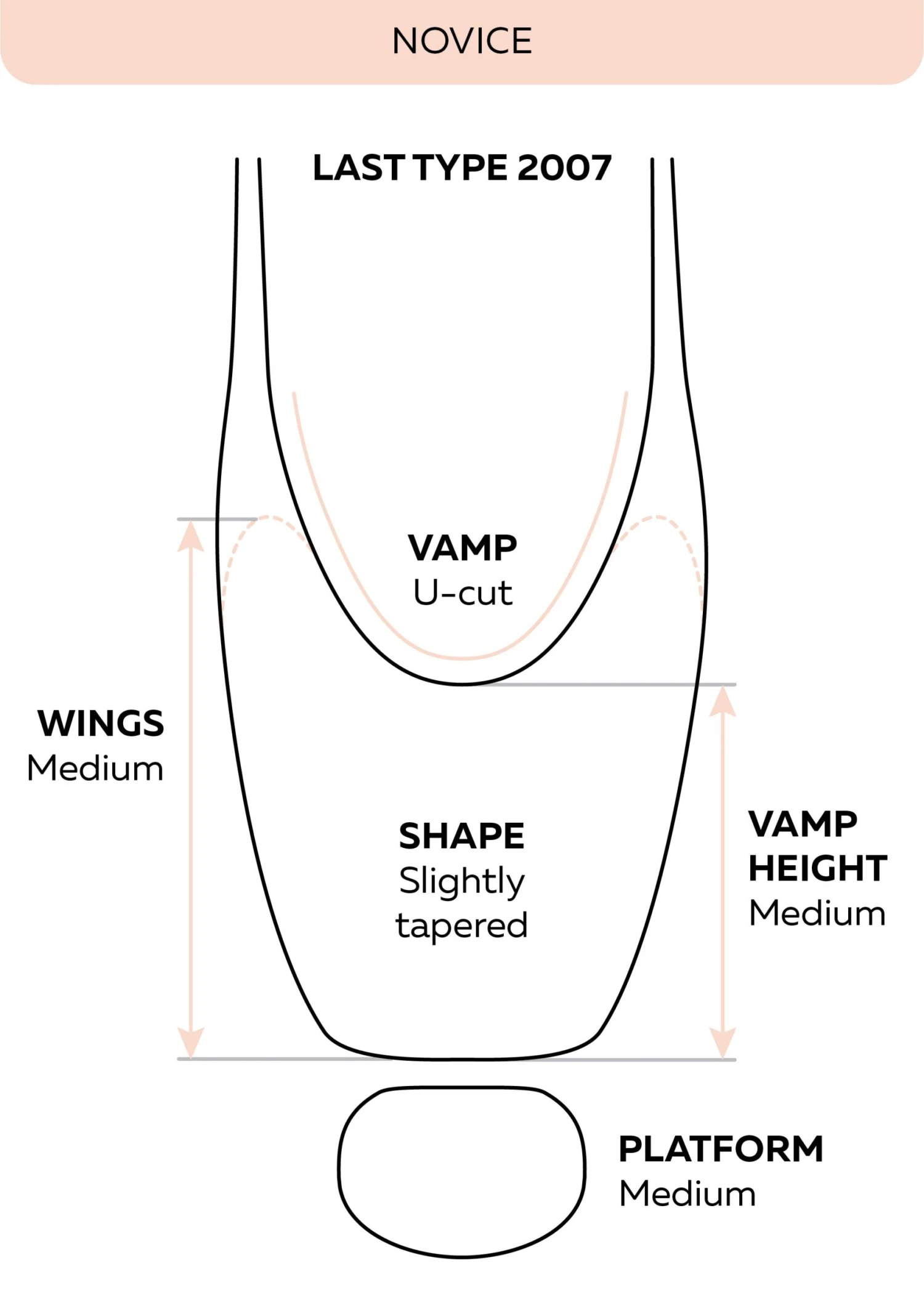 The ideal choice for beginners learning to stand on pointe, especially with the super soft shank SS.