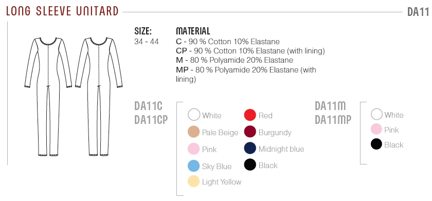 DA-11C Long Sleeve Unitard, Female, Cotton