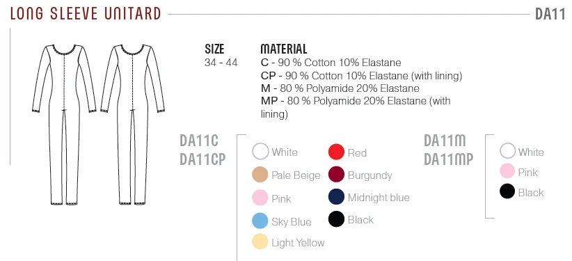 DA-11C Long Sleeve Unitard, Male, Cotton