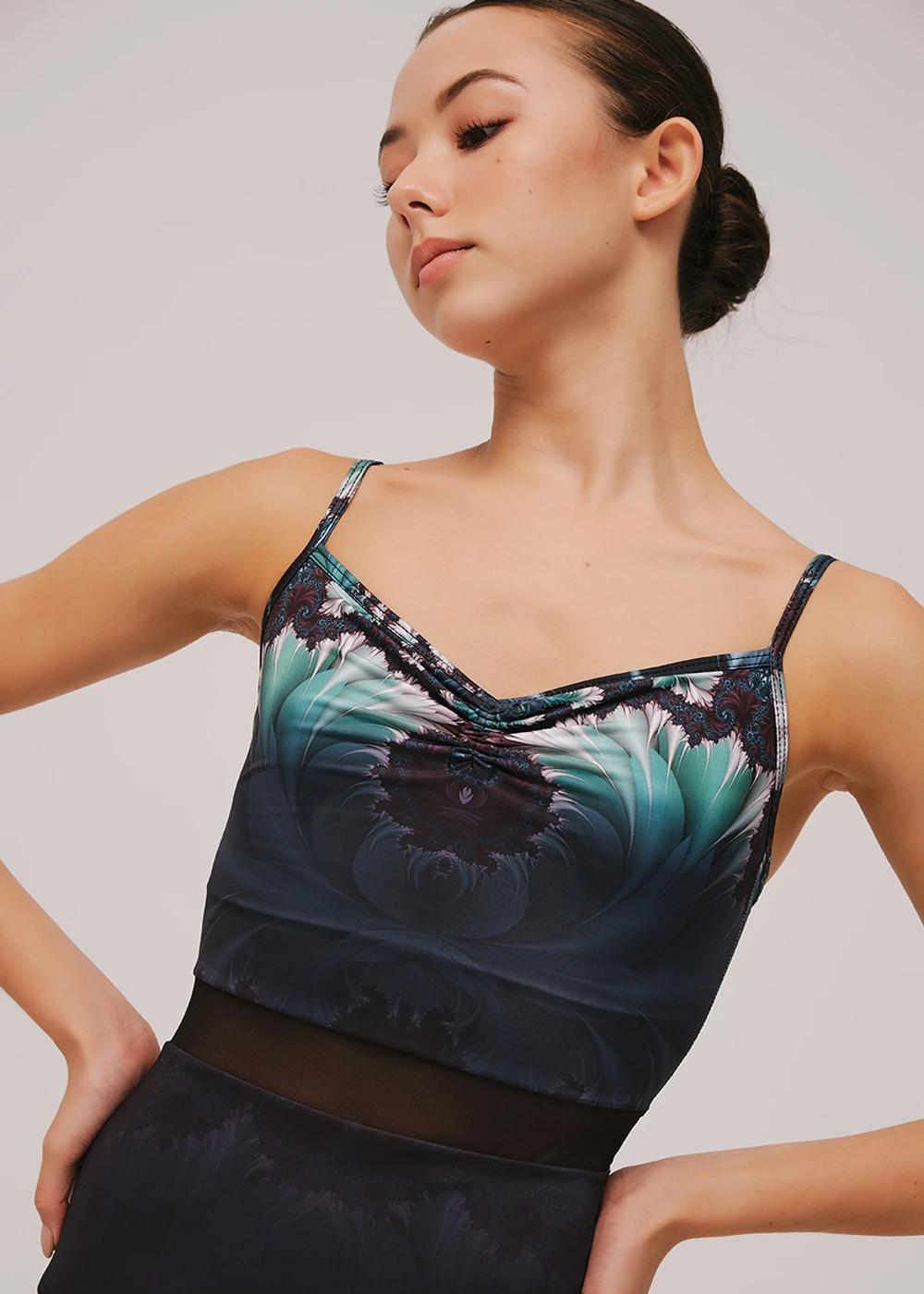 Stunning camisole leotard with adjustable straps features