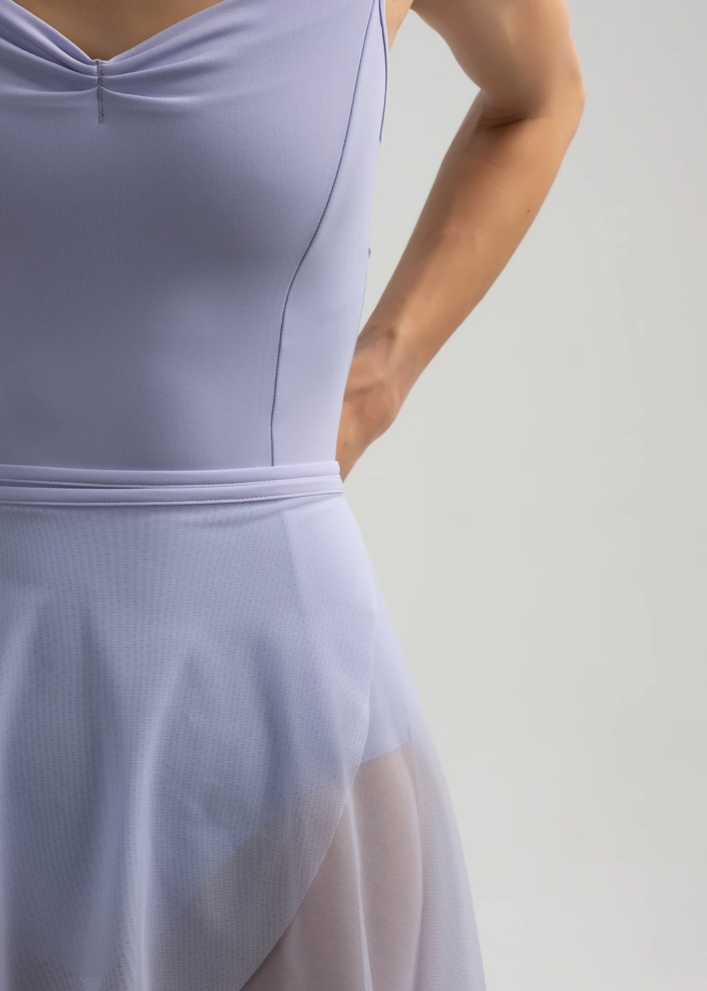 Adjustable camisole leotard with elegant princess seams and mesh back detail in V shape as well as a mixed sweetheart bust line pinch.