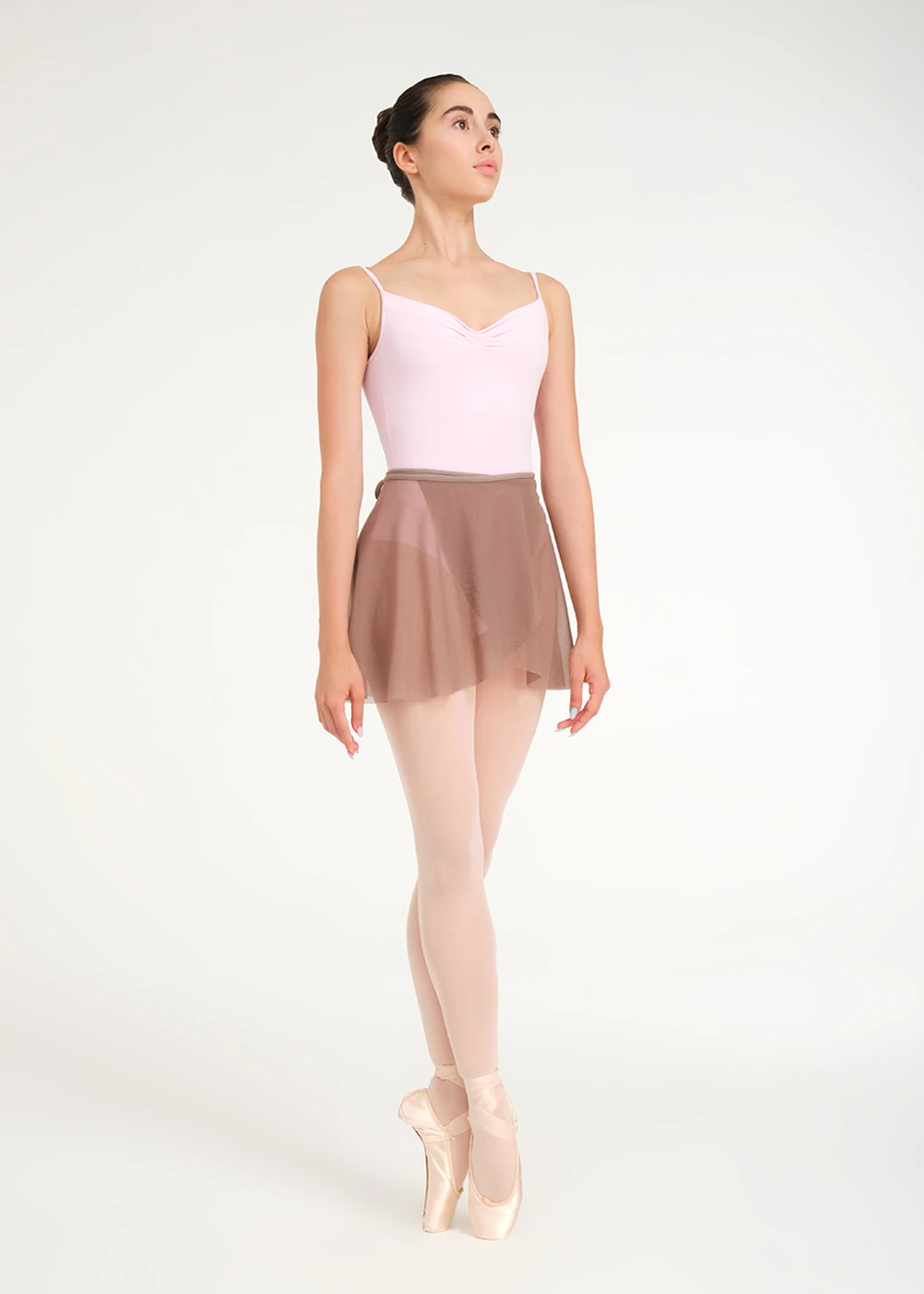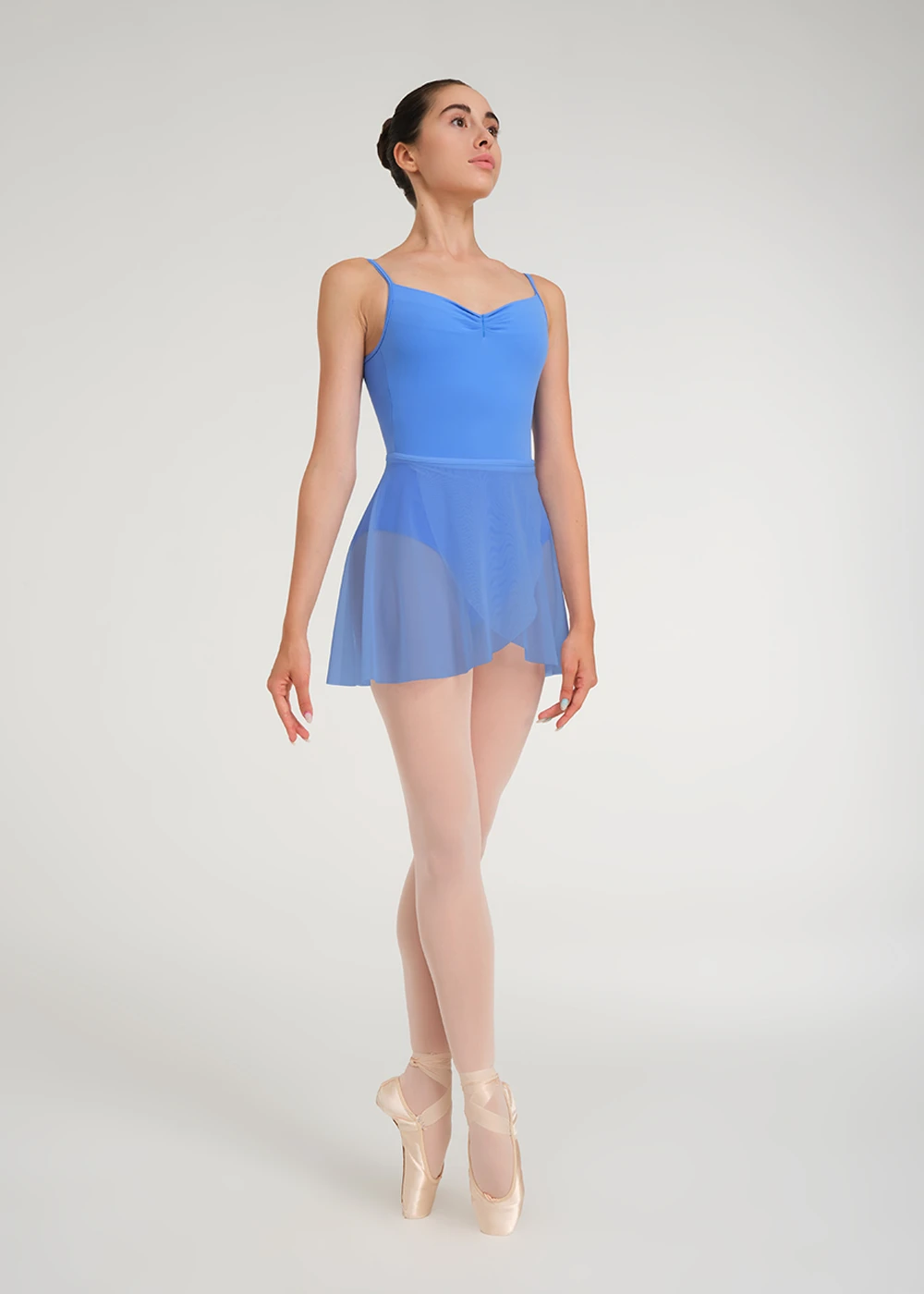 A gorgeous adjustable camisole strap leotard with fixed front pinch and adjustable hip pinch details. Open mid-back and elegant sweetheart bust line. Ideal leotard for uniform, classic elegance with modern flair.