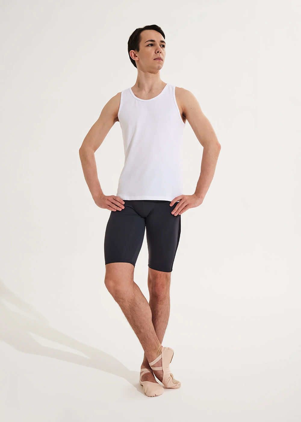NEW BASIC — traditional ballet cut male tank top, ideal for dress codes and made from cotton, which won’t fade. Available in multiple color choices.