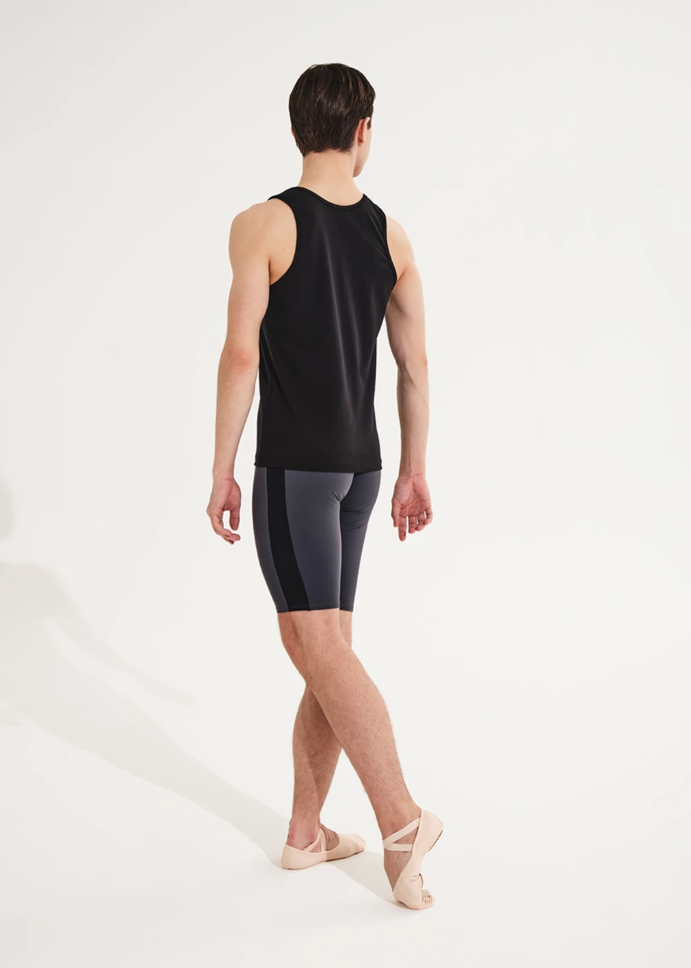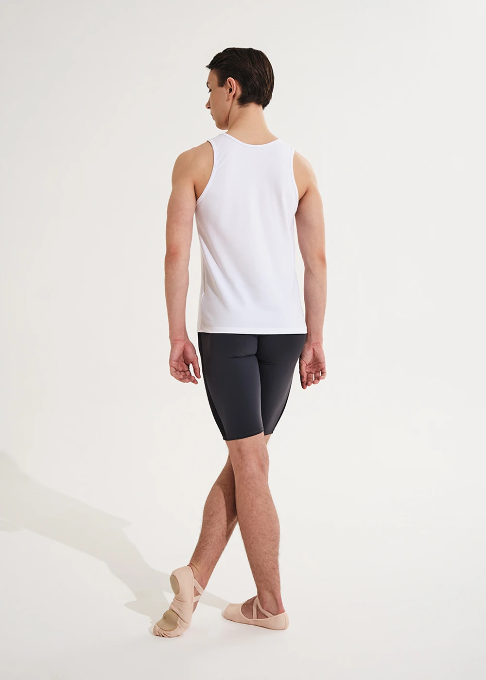 NEW BASIC — traditional ballet cut male tank top, ideal for dress codes and made from our much beloved Italian microfiber, which won’t fade. Available in multiple color choices.