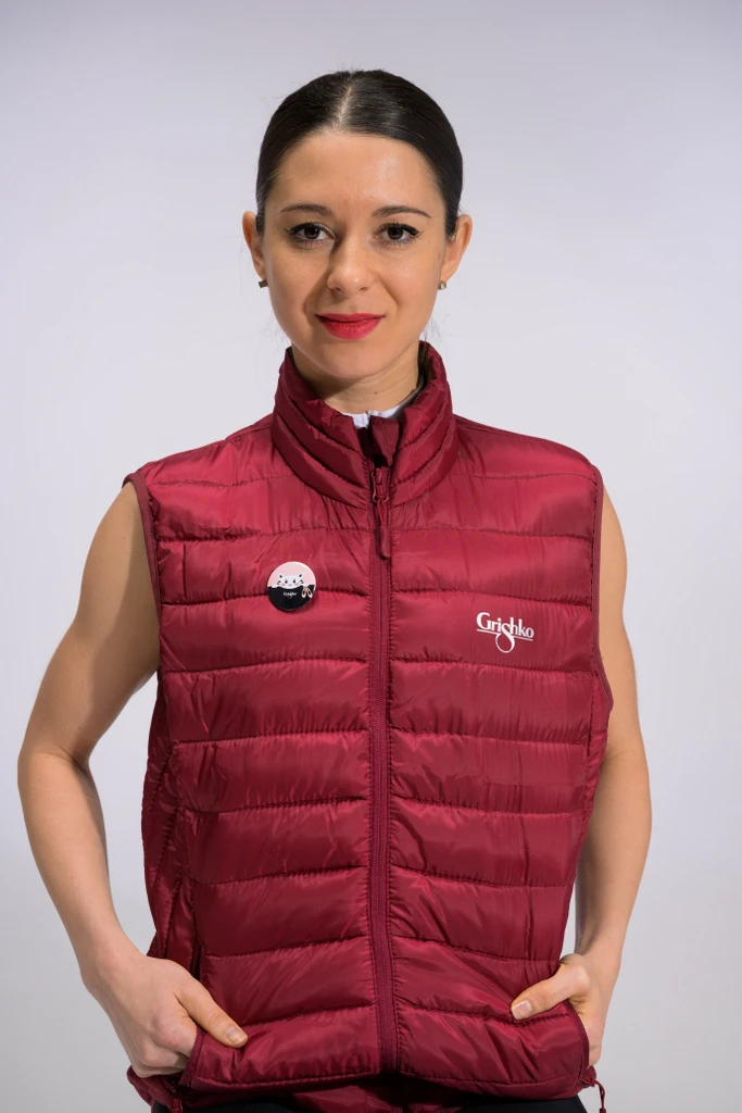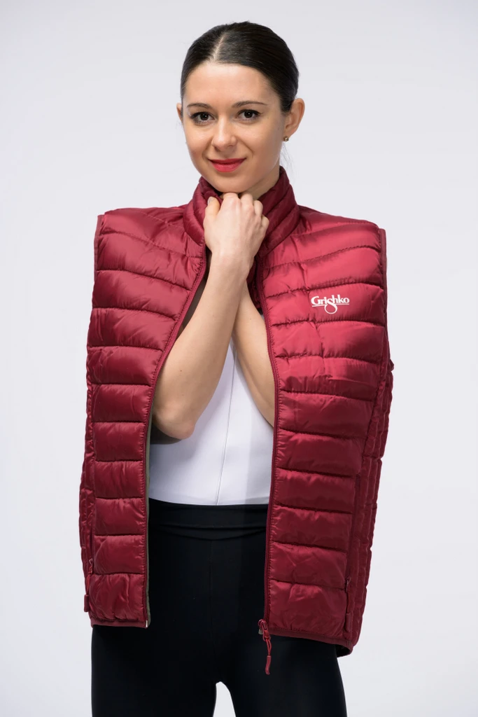 A small Grishko logo is printed on the front, a large one across the back. The vest can be easily rolled up and stored in a small bag with a drawstring, which is included.